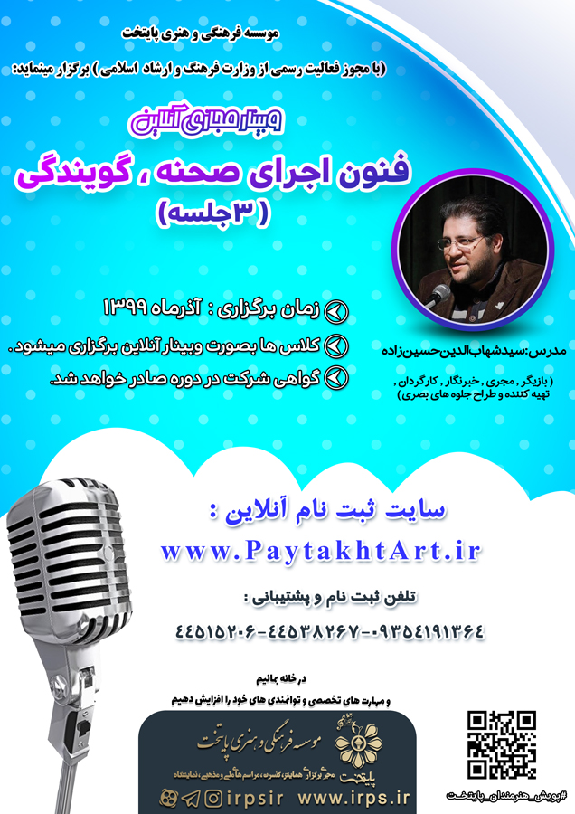 وبینار مجازی فنون اجرای صحنه ، گویندگی (رایگان)
